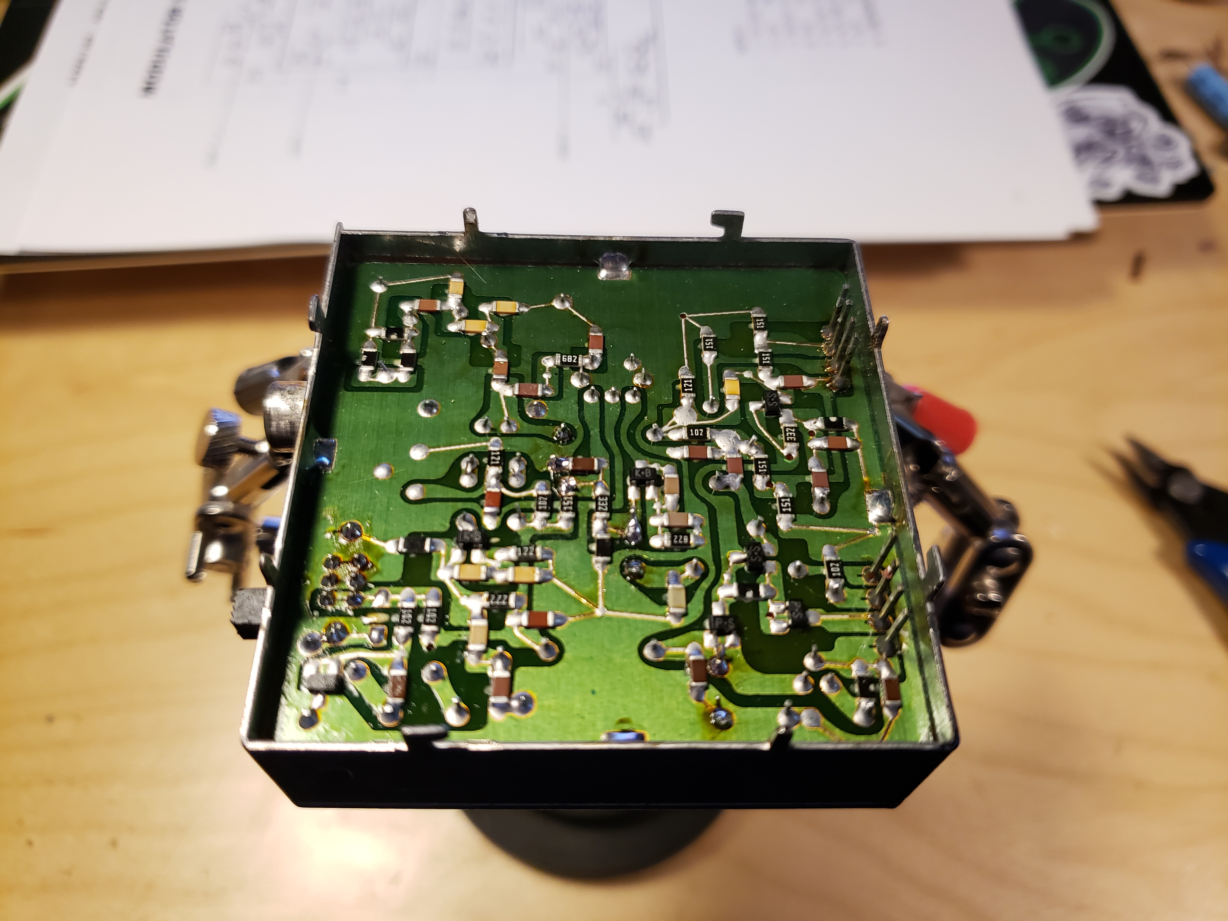 ![]() 20200417_185144.jpg The underside of the RF modulator. Lots of surface mount components made it tricky to find the through-hole solder points. |