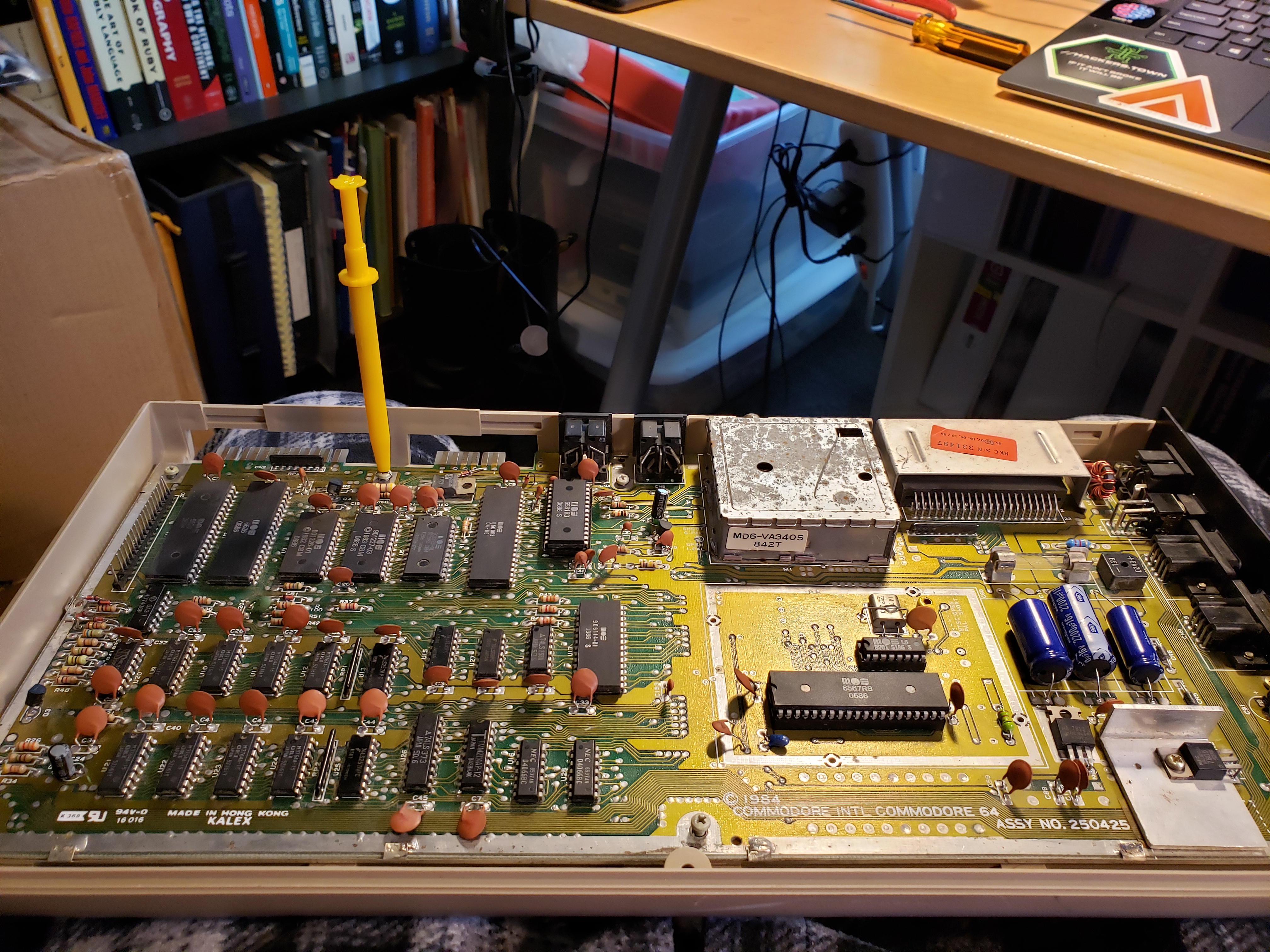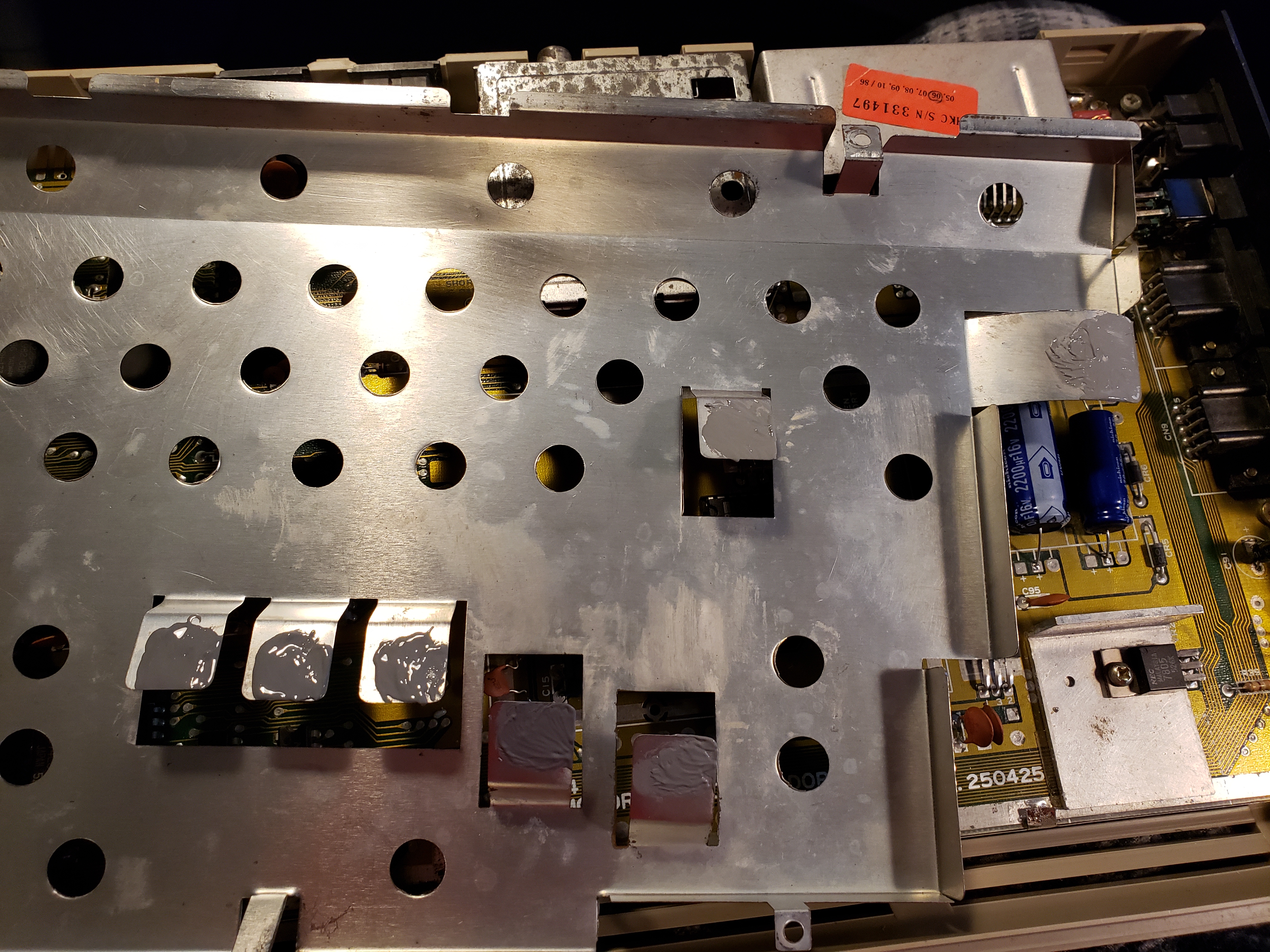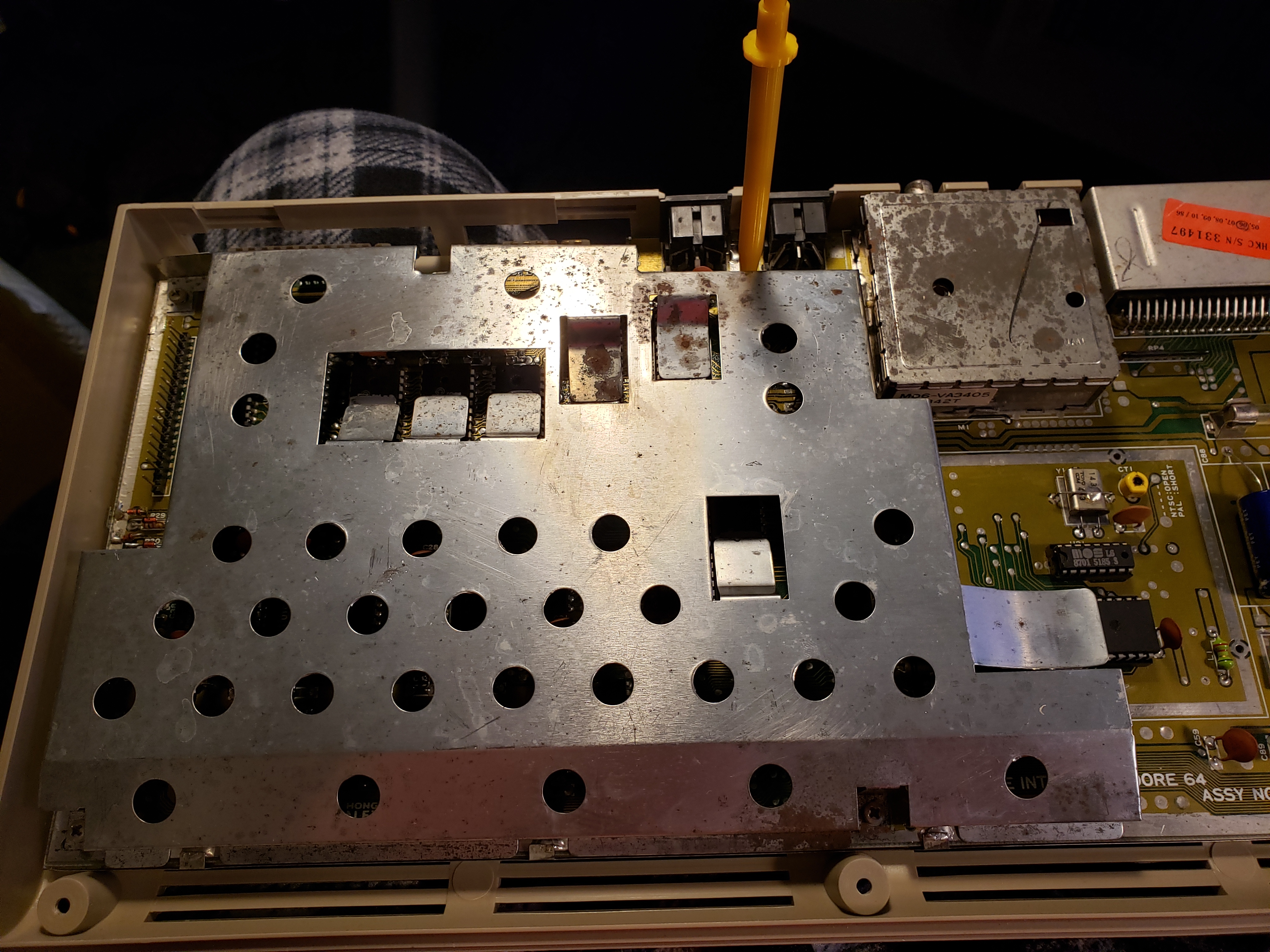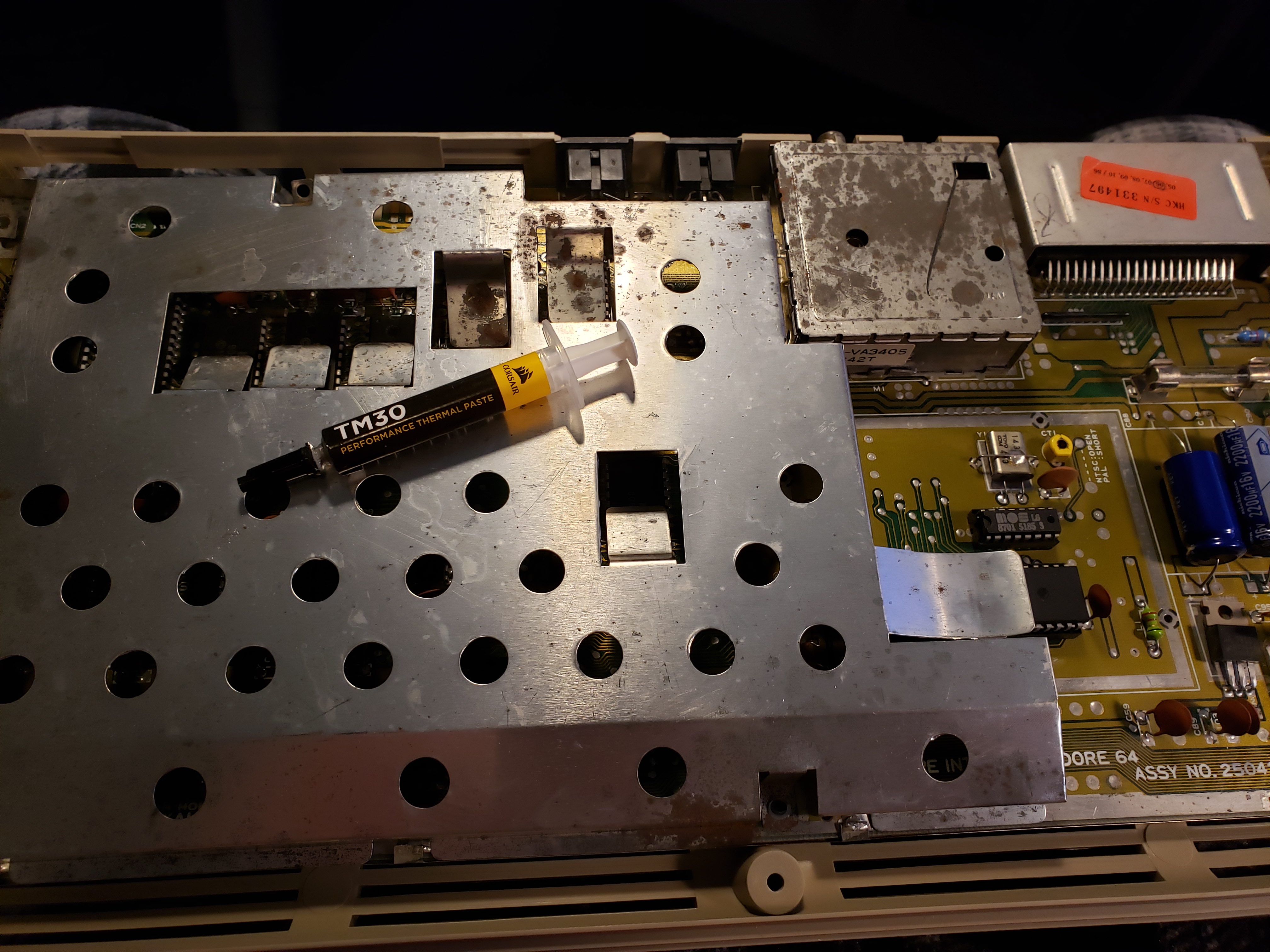 ![]() 20200421_190730.jpg To save money, Commodore used the RF shield as the heat sink for some of the chips. |